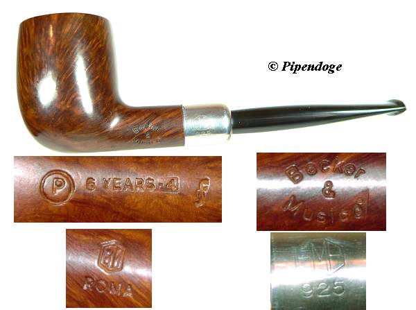 Filigrane (ca. Gr. 3), klassische Pfeife (2000) Diese Pfeife / This Pipe: ***** Kurzinformation: Die Pfeifen der Marke "Becker & Musicò" wurden von Paolo Becker und Massimo Musicó hauptsächlich, aber nicht ausschließlich für ihr Ladengeschäft in Rom angefertigt. Der Pfeifenmacher ist erkennbar an einem gesonderten Stempel: "P" für Paolo, "M" für Massimo. Allerdings wird dieser Stempel nur bei Pfeifen verwendet, die in Rom angeboten werden und dort wiederum nur bei glatten Pfeifen! Massimo und Paolo begannen mit dieser Pfeifenserie im Jahr 1995, dem fünften Jahr ihrer Zusammenarbeit im Ladengeschäft. Der Stempel, der das Herstellungsjahr ergibt, bezieht sich darauf und ist einigermaßen umständlich. Es bedeutet bei sandgestrahlten Pfeifen : " 5 years - 1" = 1996", " 5 years - 2" = 1997 usw. Glatte Pfeifen werden mit "6 years- " gekennzeichnet, d.h. "6-years - 1" entspricht demnach 1997. Glatte Pfeifen haben haben zudem ein grading, welches wieder, wie bei den Pfeifen von Paolo Becker, an den Symbolen eines Kartenspiels orientiert ist. Es beginnt mit "C" (cuori - Herzen) über "Q" ( quadri - Karo) bis "F" (fiori - Kreuz). Herausragende Stücke werden mit "C Elite" gestempelt. Im
