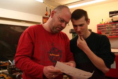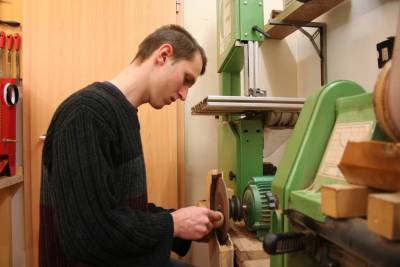 Oliver Brandt am Bandschleifer Während der Lehre und später dem Studium der Betriebswirtschaft fertigte er nebenher Pfeifen an, ebenso während seiner Tätigkeit als Profimusiker. Etwa 1990 erheilt er 100 Bruyerekanteln von Julian Schäfer (JULS), erweiterte den Maschinenpark und wurde semiprofessioneller Pfeifenmacher. Seit 1997 fertigt er ausschließlich Pfeifen an. Im Jahr 2000 kam dann Olivers jüngster Sohn Max in die Werkstatt und teilte ihm mit, dass er das Pfeifenmachen erlernen möchte. Über 2 Jahre Grundausbildung gipfelten in dem gemeinsamen Besuch von Vater und Sohn in Chicago, wo Max seine Pfeifen erstmals vorstellte, die inzwischen in die ganze Welt verkauft werden. Inzwischen nutzen Vater und Sohn gemeinsam eine helle, freundliche Werkstatt im ersten Stock ihres Hauses.