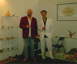 Max Brandt an der Schleifscheibe Bis 2006 gab es also die individuellen Markenpfeifen beider Macher, die „Olivé“ von Oliver und die „MB“ von Max Brandt, jeweils mit eigenem Stempel und Logo.Für die Mundstücke der individuellen Freehands kommt Ebonit bzw. Cumberland zum Einsatz. Seltener werden Mundstücke aus Bernsteinersatz oder gar Bruyere oder Horn gefertigt. Gern verwenden die beiden Pfeifenmacher auch Ziermaterialien wie Bambus, Horn, Elfenbeinersatz und verschiedene Edelhölzer. Aber auch Dinge aus dem eigenen Garten wie z.B. Fliederholz kommen zum Einsatz. Seltener verwenden sie andere Materialien wie Rentierhorn, Oryxantilopenhornzapfen oder Nilpferdzähne; zumindest die beiden Letztgenannten nur auf Bestellung an wirklich hochwertigen Pfeifen. Die Grades der „Olivé“ und „MB“ Freehands beginnen mit "AB" und "AA", weiter geht es dann mit "EX" was "extra" bedeutet, bis hin zu "EX11". Für Letztere werden dann Endverbraucherpreise von 1600.- Euro fällig. Filterpfeifen werden zusätzlich mit „F“ gestempelt.