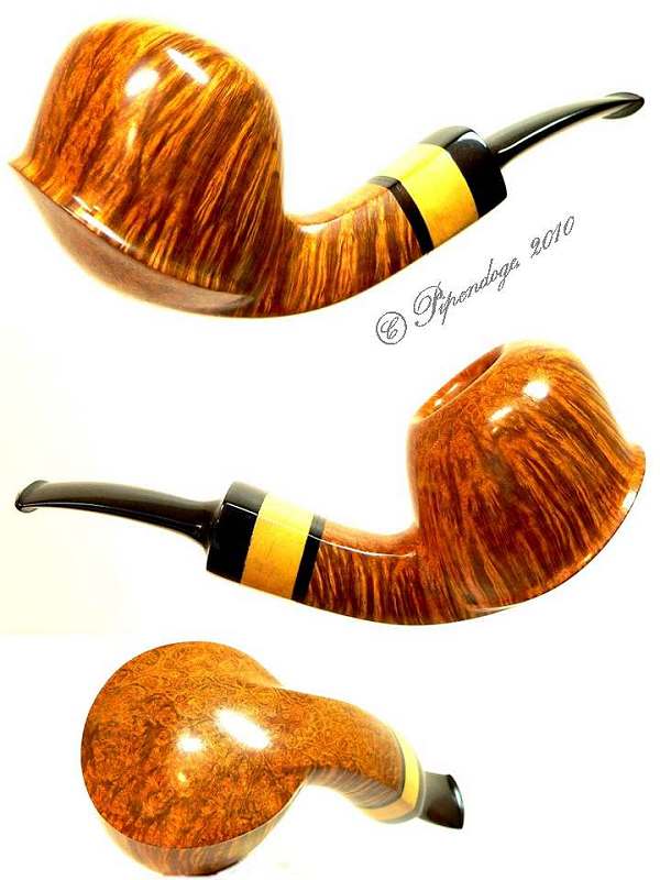 Schön gemaserte Freehand, (2010), aufwendig gearbeitetes Ebonitmundstück , Normalbohung. Stempel: "RUSSIA - Cherepanov - 26"
