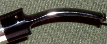 Schlecht nachbearbeitetes, vorgefertigtes Mundstück. An der Längsseite ist ein recht scharfer Grat vom Pressvorgang erkennbar, die Politur ist nicht schön, die Biss-Stege sind klobig, der Schlitz klein - Das Mundstück ist in Bissnähe dünn, wird dann dicker und schließlich wieder dünner: Ein Mundstück, welches billig wirkt.