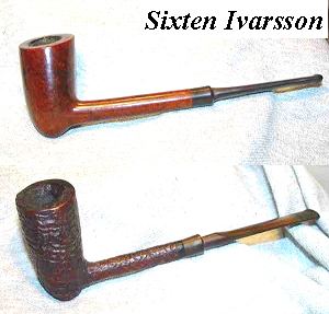von Pfeifeköpfen wissen. Es gibt grundsätzlich drei Arten, den Kopf zu formen: Diese letzte Art, Pfeifenköpfe zu schaffen, war neu. Und Sixten war der Erste, der wirklich auf diese Weise Pfeifen gestaltete. Mehrere seiner unsymmetrischen Formen wurden auch von Stanwell produziert. Viele seiner Formen hatten einen "Tropfen" unter dem Kopf, so dass der Kopf etwas wie ein Ei aussah. Im Pfeifenkatalog von Pibe-Dan war ganze Reihe von verschiedenen „Eiern“ zu sehen, z. B.. das " Kiebitzei..." Eine andere, neue Sache war der technische Perfektionismus. Heute erwarten wir von einem Pfeifenhersteller, der die meiste Arbeit mit der Hand ausführt, das im Ergebnis eine Pfeife entsteht, die seinen Vorstellungen entspricht, eine perfekte Bohrung hat, einen komfortablen Biss, einer absolut glatte Oberfläche an Kopf und Mundstück, eine schöne Maserung und in anderen technischen Aspekten den Vorgaben einer guten Pfeife entspricht. Aber zu dieser Zeit waren die meisten Fabrikpfeifen mehr oder weniger unvollkommen. Sixten erhöhte auch die technische Qualität. Eine andere Spezialität von Sixten war seine Verwendung von verschiedenen Materialien wie Bambus, Horn oder sogar Rinderknochen. Diese Materialien waren zuvor auf gleiche, elegante Weise nicht verwendet worden. Als Sixten nach dem Krieg begann, war Bruyère sehr knapp. Also musste Sixten kreativ mit den Blöcken umgehen. Es wird unter anderen Pfeifeherstellern gesagt, dass, wenn ein "normaler" Pfeifenmacher ein Pfeife aus einem Klotz des Bruyères machen konnte, Sixten drei machen würde. Um mehr Köpfe aus einem Block zu bekommen, mussten die Köpfe ziemlich kurze Holme haben und, um eine perfekte Form zu bekommen, mussten die Holme mit einem anderen Material verlängert werden. Sixten wurde im Jahr 1910 geboren und ist immer noch lebendig. (er starb 2001, Anm. d. Übers.) Aber Sixtens Sohn Lars, der auch ein weltberühmter Pfeifenmacher ist, sagt, dass er sehr alt in verschiedener Hinsicht geworden ist. Er machte seine letzten Pfeifen im Jahr 1992-1993. Er hatte nie eine große Produktion; nicht mehr als ca. 200 Pfeifen pro Jahr. Er verkaufte in vielen Ländern, Japan, Dänemark, Deutschland und USA seine Pfeifen, um nur einige zu benennen. Sixten hörte 1965 auf, seine Pfeifen zu klassifizieren. Lars