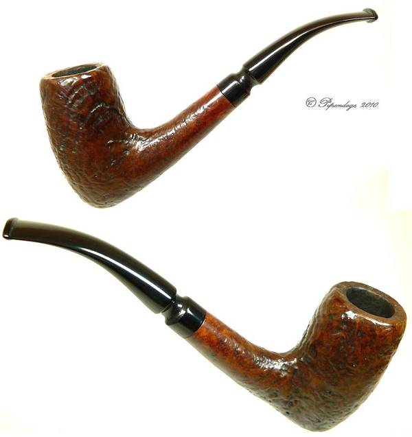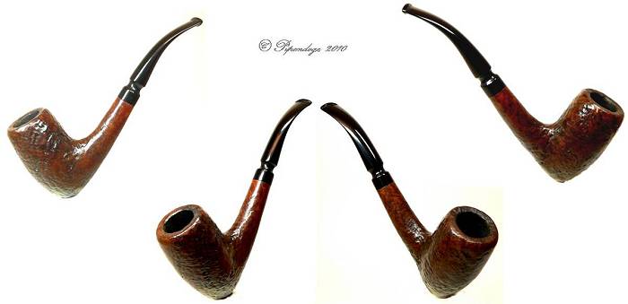 Ältere, sandgestrahlte Pfeife (ca. 1970) in sehr typischem Design und Finish. Ebonitmundstück, Normalbohrung Stempel: Hansen - Briar