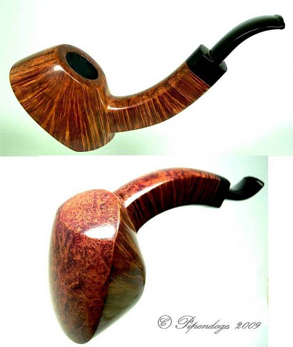 Ältere, ungwöhnliche, gebogene Vulcano Freehand mit wunderbarer Maserung Ebonitmundstück, Normalbohrung