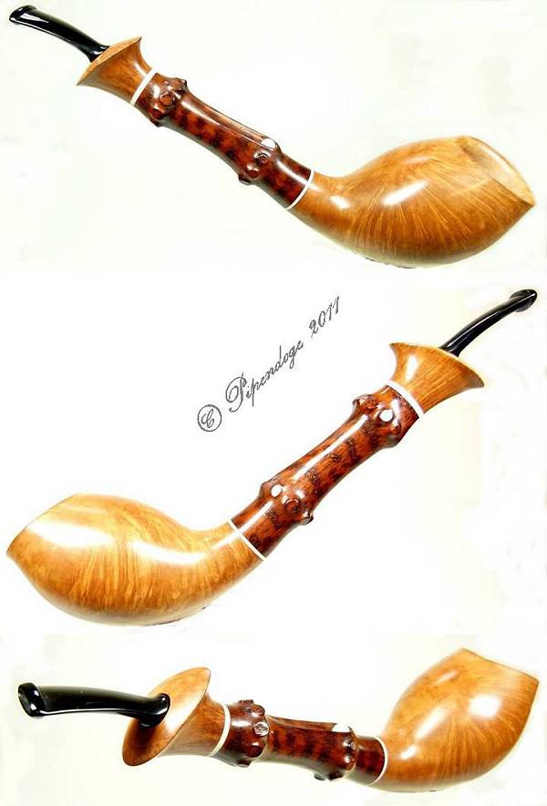 Schwungvolle Freehand, Holm aus Zierholz in Bambusanmutung, Perlen und Spacer aus Elfenbeinersatz. Ebonitmundstück - Normalbohrung