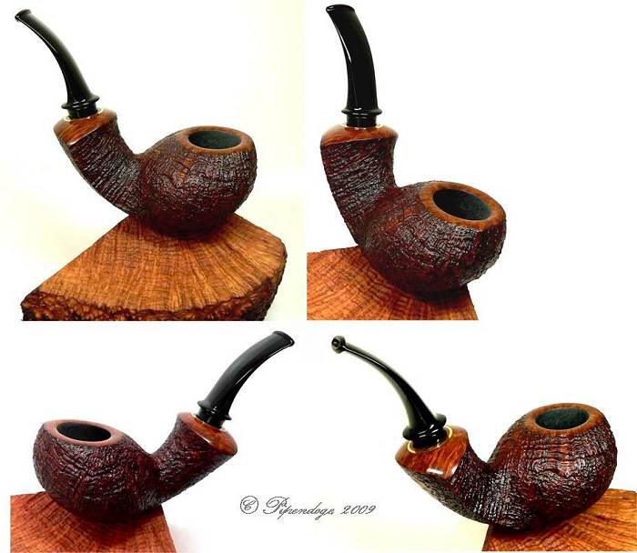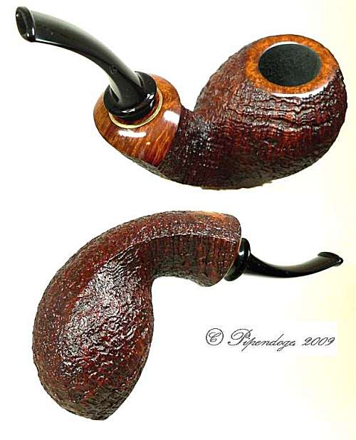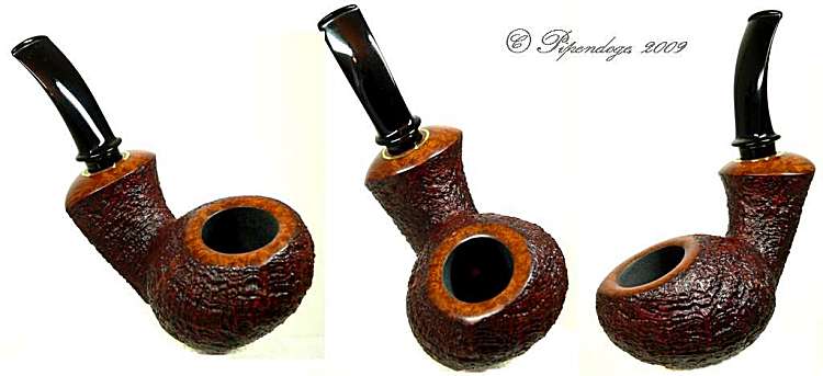 Schwungvolle, gescheitelte, sandgestrahlte Pfeife Ebontit-Steckmundstück, Normalbohrung Stempel: "C. Mänz - Germany"; "JL"; "7 09"