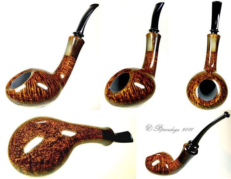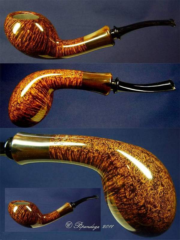 Traumhaft gemaserte Freehand, Golden Contrast Hornferrule, Ebonit-Steckermundstück, Normalbohrung "C. Mänz - Germany"; "11"