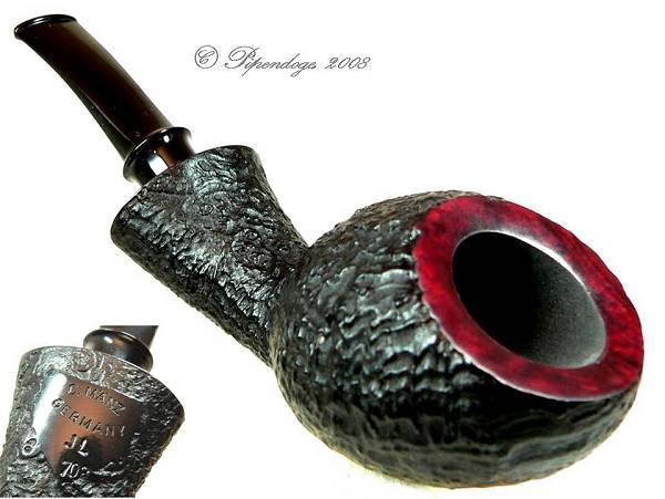 Aktuelle (2008), recht große, schön gestrahlte Freehand Stemplel: "C. MÄNZ - GEMANY" "JL" 7 08" Diese Pfeife / This pipe: ungeraucht / unsmoked Zurück z. Übersicht Cornelius Mänz / Back to Mänz Overview