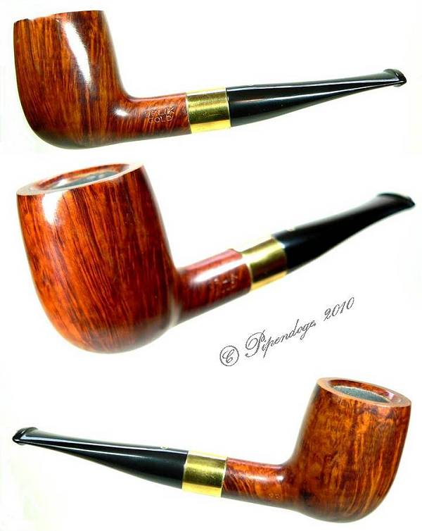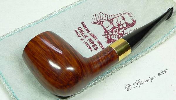 Recht hübsch gemaserte Serienpfeife unklaren Alters Ebonitmundstück - Normalbohrung. Metallring vermutlich kein Gold