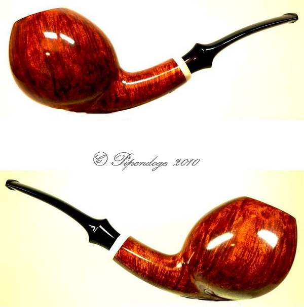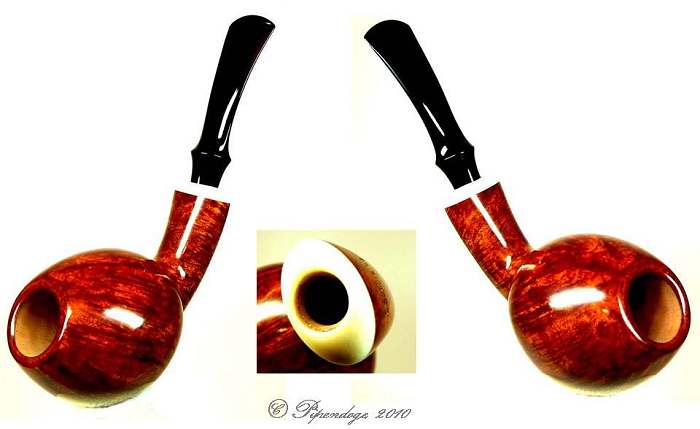 Schwungvolle Freehand (2010), "Canted Egg", Holmabschluss aus Elforyn Ebonitmundstück , Normalbohrung. Stempel: SENATOROV