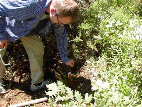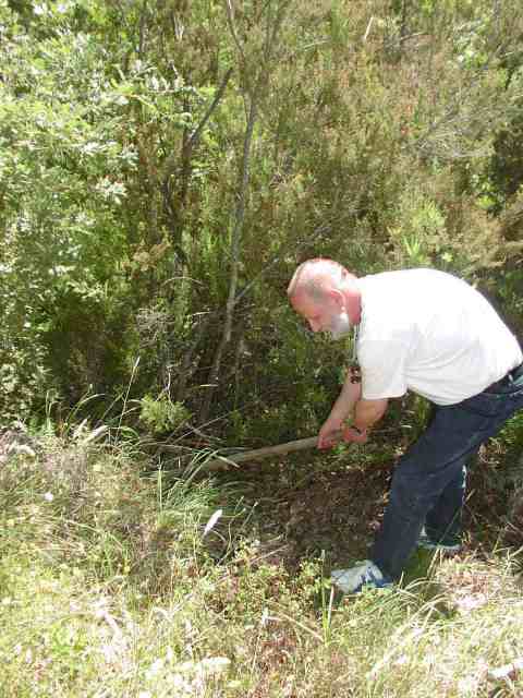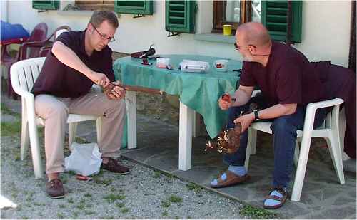 Ob man nun wirklich in praller Sonne auf Bruyere-Suche gehen soll sein einmal dahingestellt. Gemacht haben wir (Cornelius Mänz, links und ich) es trotzdem. (Toskana, Casa Bistino in Ambra bei Siena, 2002)
