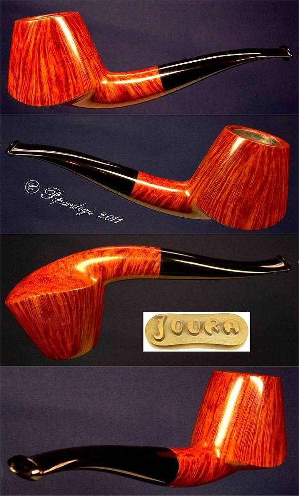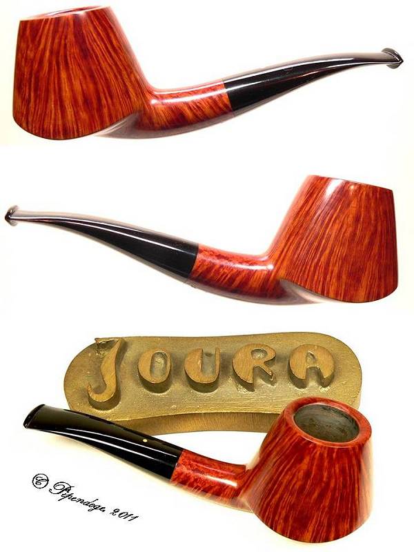 Ältere (ca. 1985), sehr schön gemaserte Freehand von mittlerer Größe, Ebonitmundstück mit Goldpunkt, Normalbohrung Stempel "Joura - Freihand", "D"