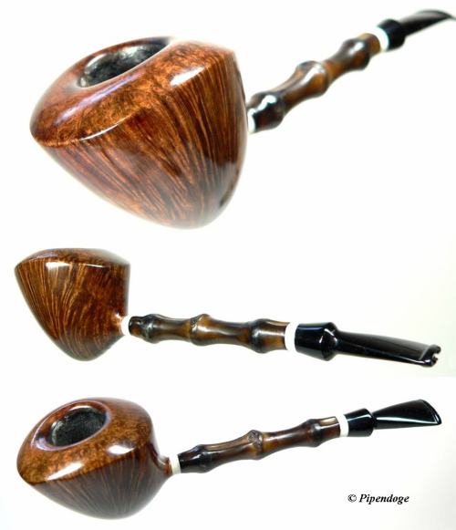 Filigrane, sehr leichte Freehand (2006) Bambus-Zwischenstück, Spacer aus fossilem Elfenbein, Ebonitmundstück, Normalbohrung. Stempel: " J. Moritz" - "Handmade"