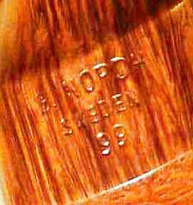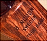 With permission of Robert Schrire The pipes of Bo Nordh stand out due to a bold use of shapes, consist of the best of best wood and the smooth models offer a firework of grain. In the past, the sand-blasted pipes were blasted at Stanwell. In the meantime Nordh uses the offer of two Danish master-carvers to let his pipes blast there. These newer sand-blasted models (black) are of a great beauty and more deeply in surface texture. The pipes of Bo Nordh are absolutely often of stately size. Nevertheless, all are impressive because of swinging elegance. Nordh like to use bamboo and horn extensions for the prologantion of shanks. Despite the excellent quality of his woods, Bo Nordh also provides his pipes with a coating, what might well speak for the practical sense of this method. The pipes are stamped as follows: