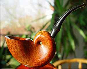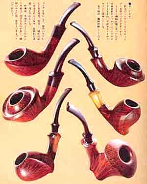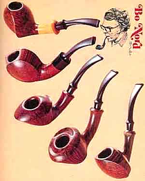 Bo Nordh passes away in July 2006 after a very short but serious illness. He was the uncrowned King of all recent pipe makers and an idol for all younger carvers. The legendary Sixten Ivarsson, asked for the best pipe maker all over the world have mentioned Bo Nordh from Sweden and his son Lars. Can such a grand-master of his subject be mistaken? As hardly another one, Bo Nordh (born 1941) have created pipe shapes which were unknown till there. The pictures from a Japanes pipe book of 1978 show exemplarily that this variety of outstanding shapes has arisen not at all only in recent past. Snail (Nautilus), Ballerina, Sea Horses, faceted Horns and Elephant Foot as well as recently a shape called "Ramses" belong to the most famous shapes. Nordh has established a quality standard which arouses the highest respect everywhere. Some pipe makers and collectors recently told me that the processing quality of Bo Nordh is unequalled worldwide. Not requires any further explanation, that pipes worked so perfectly can be smoked also perfectly.