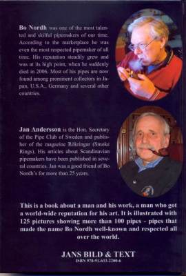 Das Buch von Jan Andersson ist am 15. April erschienen und gestern kam mein Exemplar hier an. Jan ist nicht nur ein langjähriger Freund von Bo Nordh gewesen, sondern auch der Herausgeber der Zeitschrift „Rökringar“, des Club-Journals des schwedischen Pfeifenklubs. Gerade in Südschweden besteht in diesem Club ein sehr guter Zusammenhalt und das Haus von Bo Nordh war der zentrale Treffpunkt über viele Jahre. Dementsprechend sehr persönlich, aber eben auch sachkundig ist der Text, den Jan verfasst hat. Es wird über die Jugend von Bo berichtet, ebenso über seinen Werdegang nach seinem schweren Unfall bis zu den ersten Pfeifen, die Bo anfertigte und schließlich in Malmö erfolgreich verkaufte. Bo kommt in Zitaten häufig zu Wort, wie auch seine Person insgesamt im Buch gewürdigt wird. In mehren Kapiteln werden dessen Vorlieben und Sichtweisen, Hobbies und Interessen ebenso dargestellt, wie – natürlich- seine Pfeifen.