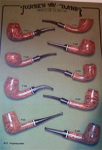 Die Kataloge von DAN PIPE (vormals Danske Pibe), hier aus den 1970ger Jahren sind ebenfalls inzwischen begehrte Sammlerstücke. Sie sind Beleg einer inzwischen 30-jährigen Erfolgsgeschichte. Allen Hemmnissen zum Trotz publizieren die Eigentümer jährlich einen schönen Versandkatalog. Interessant ist hier vor allem die Beobachtung der Modell- und Preisentwicklung und, vor allem bei Eigenmarken wie der beliebten Walhalla-Serie, der aus meiner Sicht nachteilige Wechsel von filterlosen Modellen zu solchen mit 9-mm-Filterbohrung.