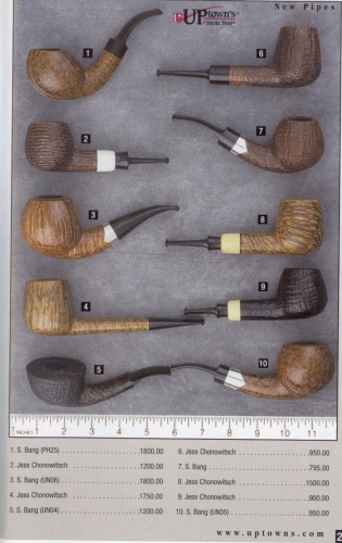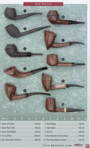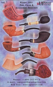 Die Kataloge von Uptown´s sind kleinformatig und basieren auf einer ursprünglich verschickte Lose-Blatt-Sammlung. Die Kataloge im Querformat stammen von 1998 und 1999. Sie sind mit römischen Zahlen nummeriert. Ab Winter 2000 gibt es dann die Kataloge im Hochformat. In den Kataloge finden sich Pfeifen aller Preislagen, Tabake und Zubehör. In der Regel wird in jedem Katalog ein Pfeifenmacher bzw. eine Marke in Interview-Form näher vorgestellt. Meine Sammlung ist nicht ansatzweise vollständig und stammt komplett aus dem Nachlass von Tom Dunn.