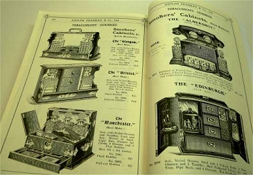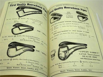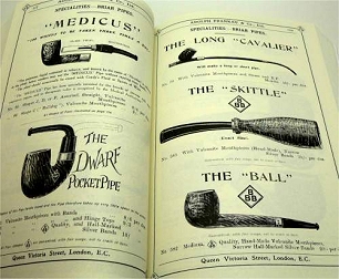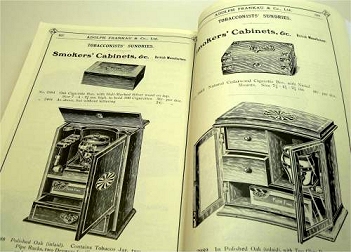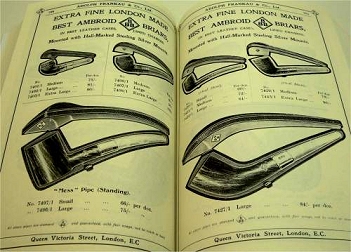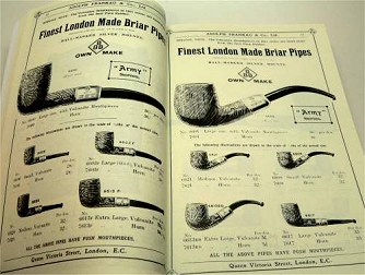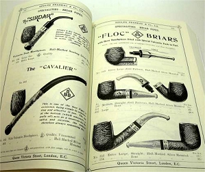 Dieser wunderschöne Katalog von Adolph Frankau & Co. Ldt. (BBB) ist 1912 erschienen und zeigt auf über 400 Seiten ein breites Sortiment von Pfeifen und Zubehör. Der Katalog ist extrem selten, weil er nur für den Großhandel bestimmt war und offenbar in dieser Ausstattung nur eine Auflage erlebte. Bei späterer Verwendung wurden dann wohl lediglich aktualisierte Preislisten beigelegt oder verschickt. Die hier vorliegende, sehr gelungene Kopie, herausgegeben von Gary Schrier ist durchgängig schwarz-weiss bebildert, wobei die Bilder gezeichnet sind. Im Original waren die Bilder wohl in einem Rot-Ton gedrückt worden. Ein Sammlerstück vom Feinsten und ein Dokument der Rauchkultur des beginnenden 20. Jahrhunderts.