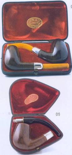 Diese wunderschönen Kataloge von Loews & Co. sind 1912 bzw. 1926 erschienen und zeigen auf zusammen rund 140 Seiten ein breites Sortiment von Pfeifen . Die Kataloge sind extrem selten, weil sie nur für den Großhandel bestimmt waren und offenbar in dieser Ausstattung nur selten aktualisiert wurden (No. 7 - 1919; No 9 - 1926).