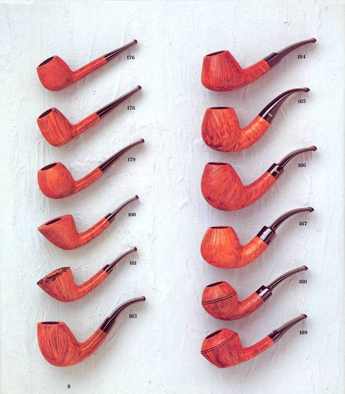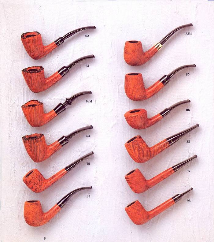 Diesen schönen Katalog (21 x 23 cm) habe ich 1996 bei meinem Besuch bei Stanwell mitgenommen. Er zeigt die damals im Programm befindlichen 58 Modelle, ausschließlich Pfeifen mit Normalbohrung.