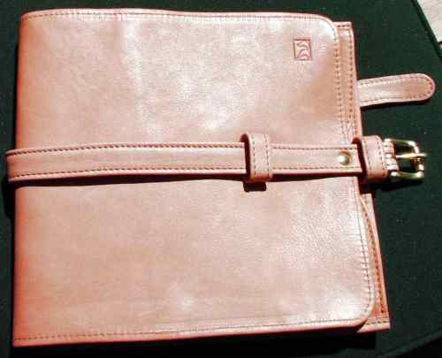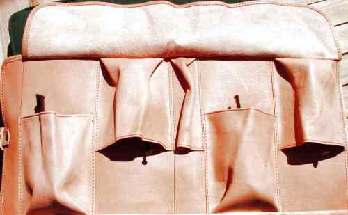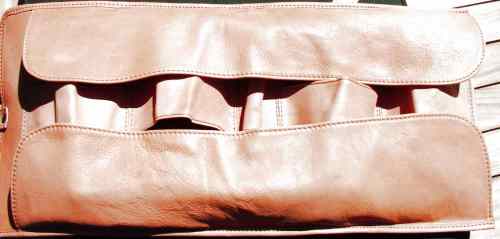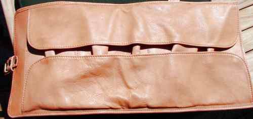 Tasche aufgerollt, Laschen aus weichem Leder noch eingeklappt, ohne Pfeifen.