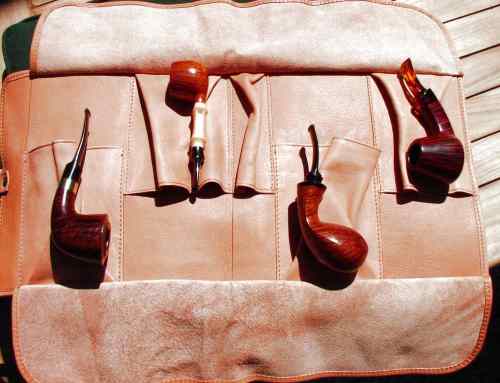 Die Suche nach einer geeigneten Pfeifentasche ist schwierig und natürlich vom individuellen Geschmack und den Bedürfnissen des Pfeifeninhabers abhängig. Diese Art einer Pfeifentasche wurde vom Pfeifenmacher Bertram Safferling entworfen und er benutzt sie auch selbst im täglichen Gebrauch.
