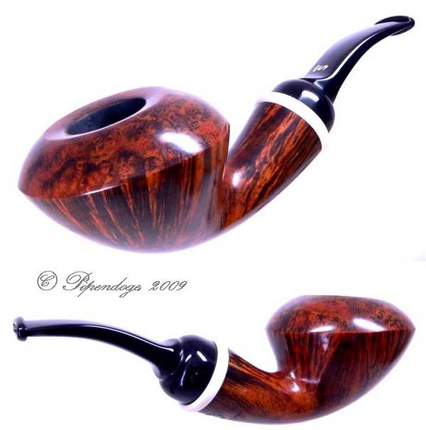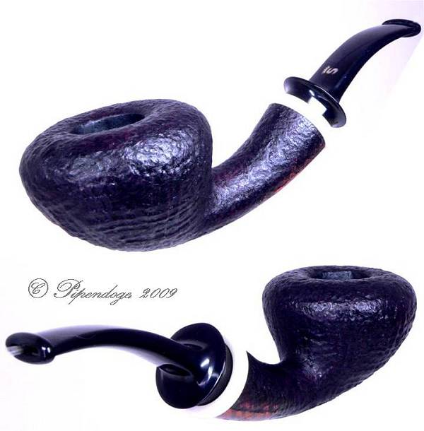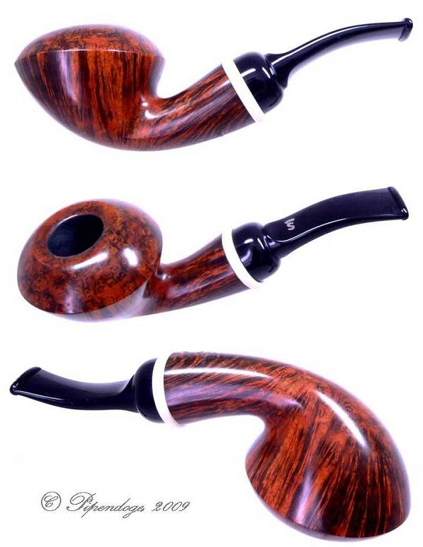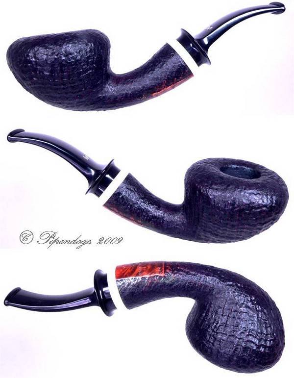 Zwei Pfeifen der aus der Design-Serie von Nanna Ivarsson, 2009 Die glatte Pfeife ist für 9mm-Filter vorgesehen, die Sandgestrahlte ist mit Normalbohrung. Ringe aus ELFORYN (R)